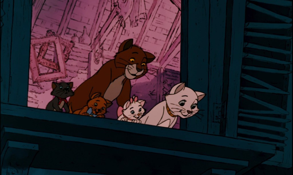 Hard to say if “everybody wants to be a cat” after watching this film. All of the cats are decent, simplistic characters that reach the bare minimum of likeability, while Edgar the butler doesn’t go far enough in being either threatening or funny. The journey that the cats embark on to get home feels more like fluff rather than something significant. While most of the films from this era had episodic plot structures, this film makes that structure glaringly obvious, as there’s a lack of effort in creating a linear experience. The slapstick humor is executed decently enough, while the visuals are good for the time with the occasional intricate details. Like many animated Disney films, the musical numbers are a highlight, despite three different sets of songwriters and composers working on the musical numbers.